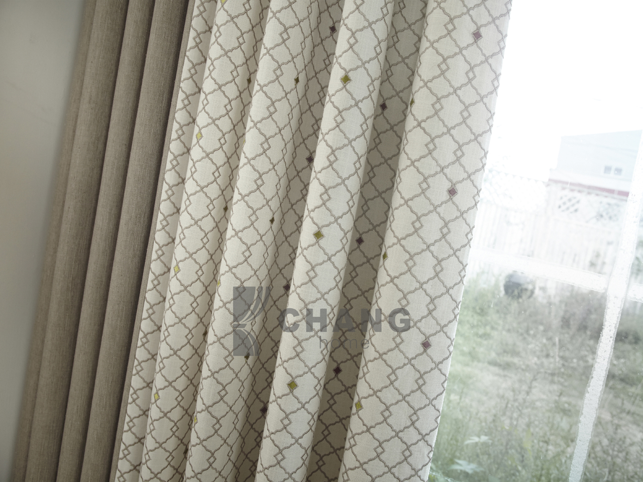 베이지 그래이 톤의 솔리드와 우아한 아이보리 쟈가드 원단.
